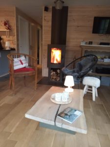 - Poêle à bois dans le séjour (le bois est compris et livré au chalet.)